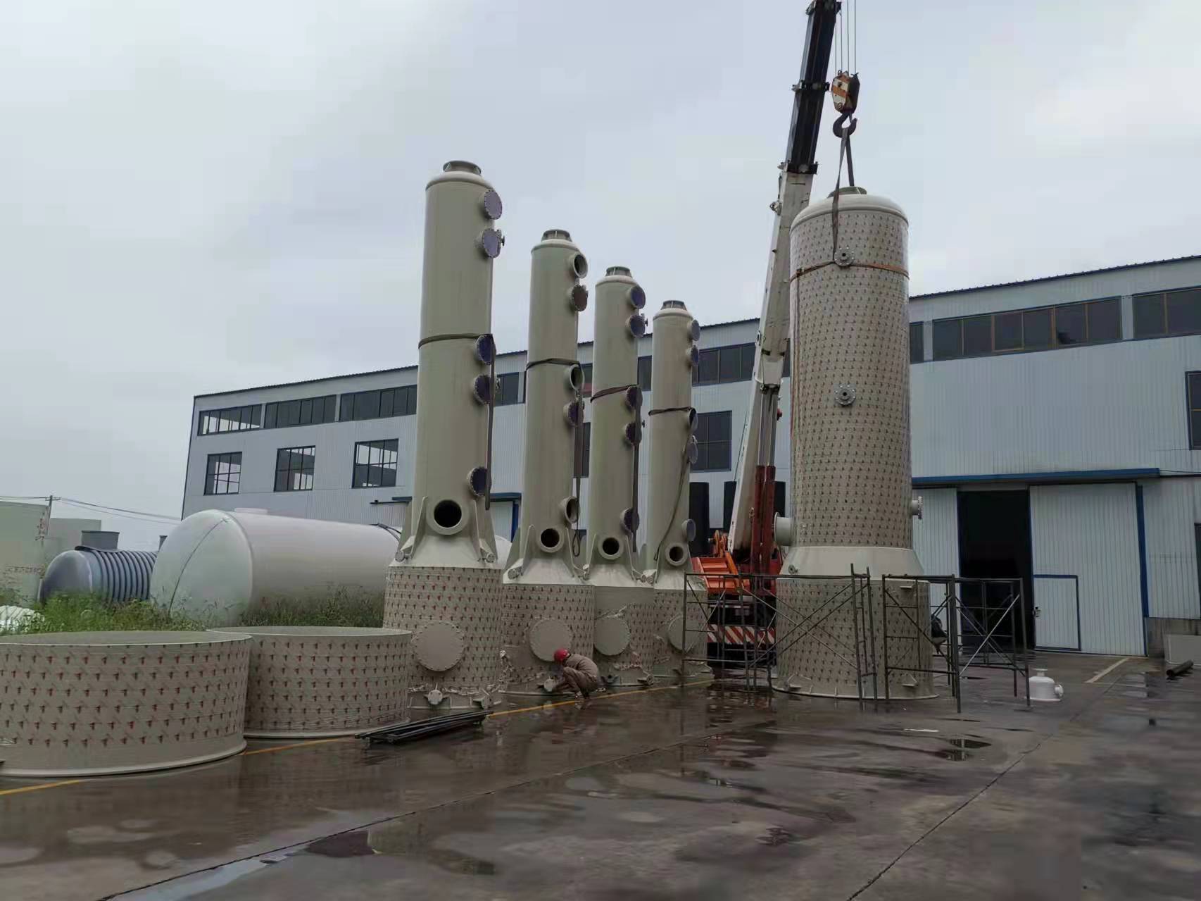 安全性塔体采用一体成型无焊缝缠绕管保证塔体不渗漏,塔体和塔底采用同种原来整体浇筑而成,塔体和塔底融为一体,更确保其安全性杜绝漏液情况发生。耐腐蚀抗老化塔体有我公司自己生产,在生产工程中加入抗老化和抗紫外线的原料,使喷淋塔抗老化防腐蚀性能更好,延长使用寿命。适用范围广聚丙烯喷淋塔主要适用于化工、冶金、电镀、化纤、印染、环保、石油、电子、医药、食品、油脂、轻功、制酸、酸洗、蓄电池材料等行业。