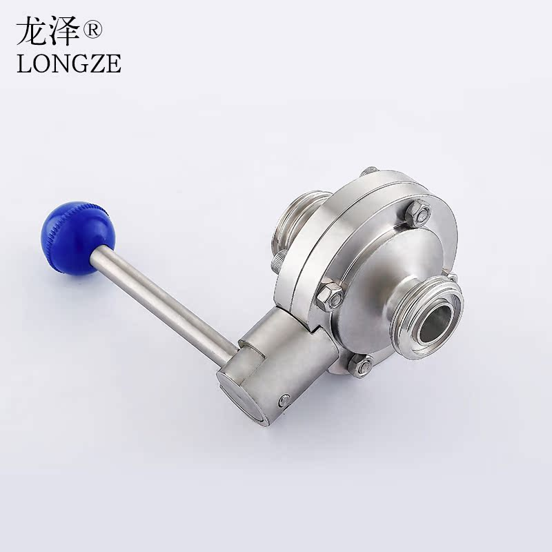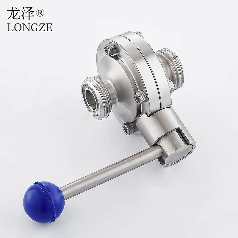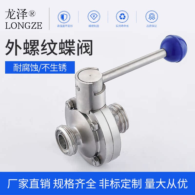 龙泽304/316L不锈钢卫生级外螺纹蝶阀手动活接型食品级亮面阀门