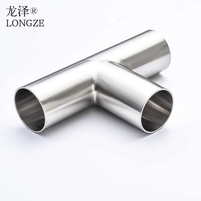 龙泽卫生级焊接三通304不锈钢等径T型管接头内外抛光镜面管件
