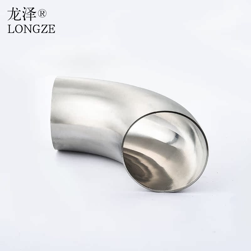 龙泽304直角弯头90度接头加长焊接卫生级弯头自动焊内外精抛316L