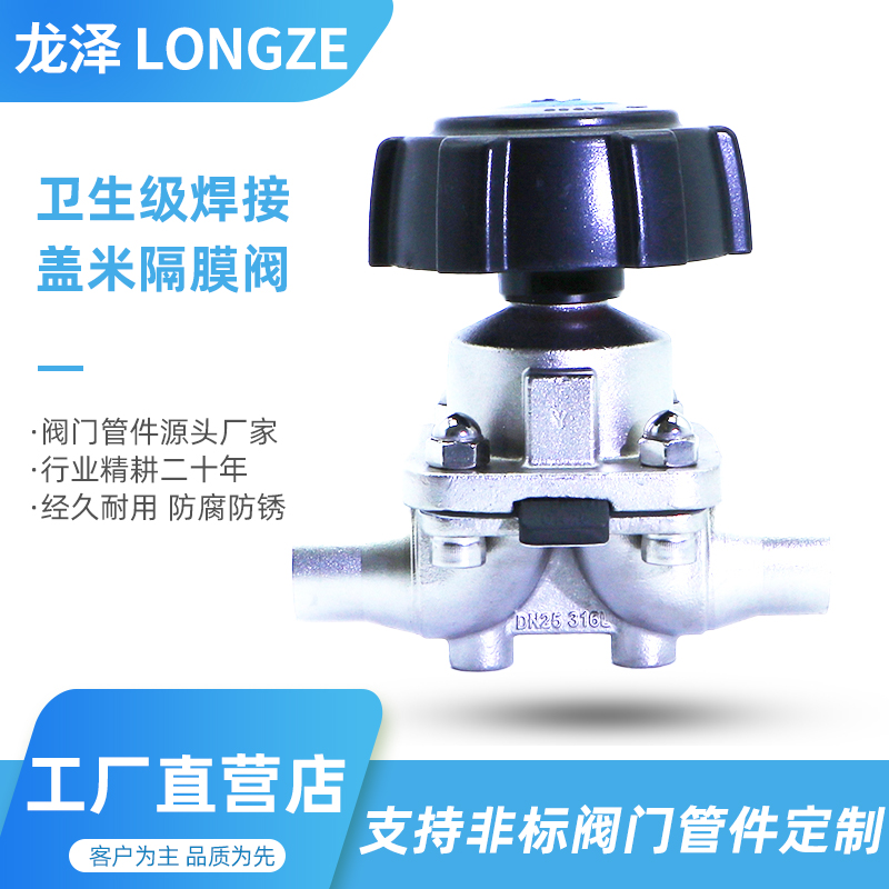 龙泽316L不锈钢DIN焊接盖米隔膜阀食品级手动复合分体双膜片阀门