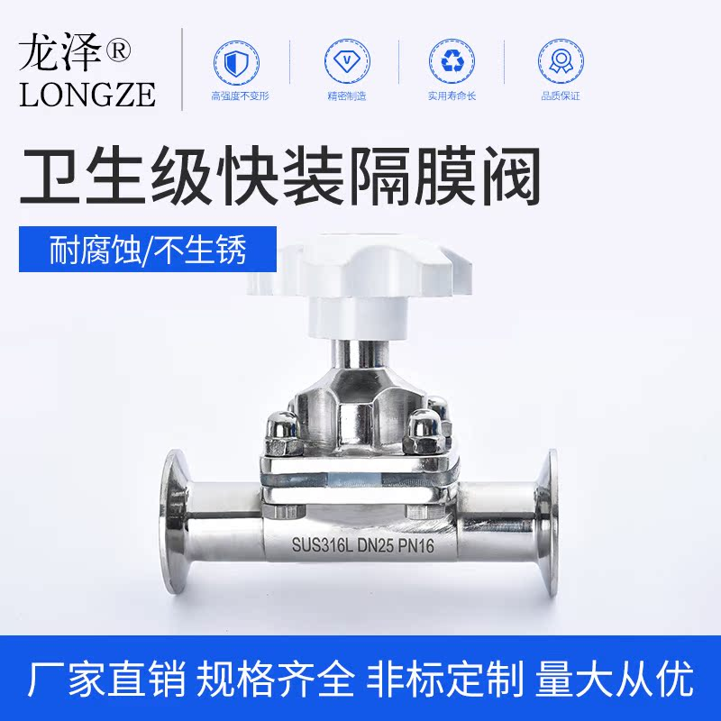 快装隔膜阀316L龙泽不锈钢食品卫生级直通快开卡盘式卡箍膜片阀门